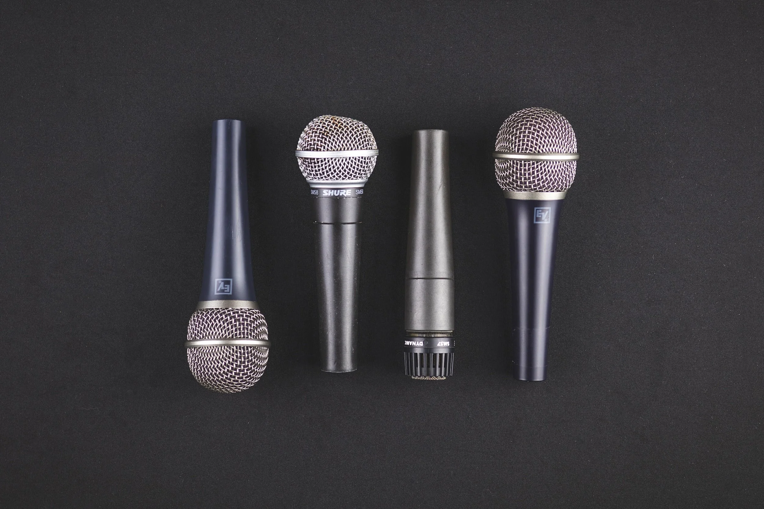 Types of microphones: dynamic, condenser, ribbon, tube.